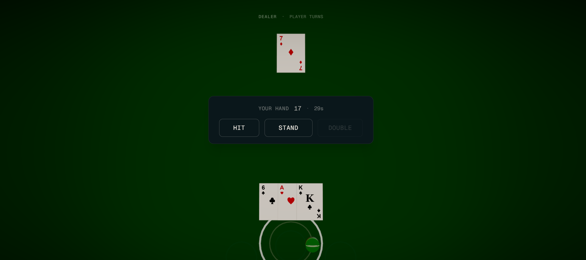03BlackjackMultiplayer blackjack at a 3D table. Join a table, place bets, and play against the dealer with other players.