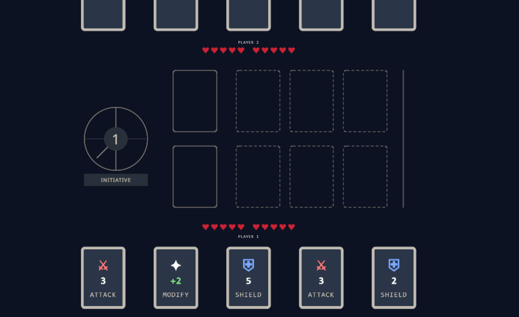 Place attacks and shields on a shared timeline. Predict your opponent three turns ahead.