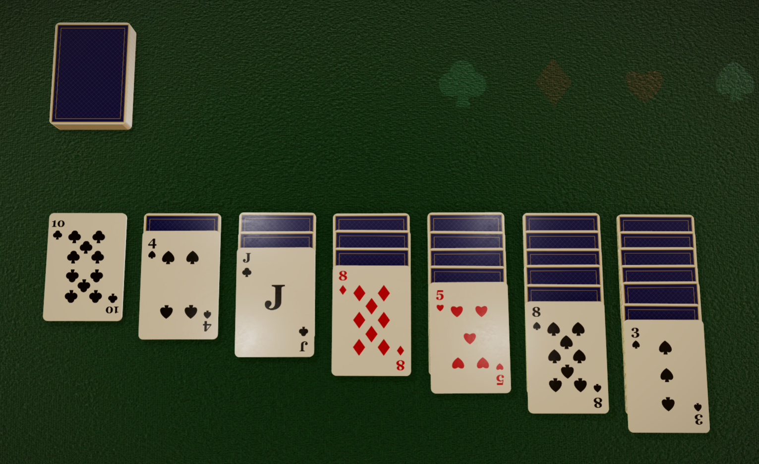 Classic Klondike with realistic 3D cards on a green felt table.